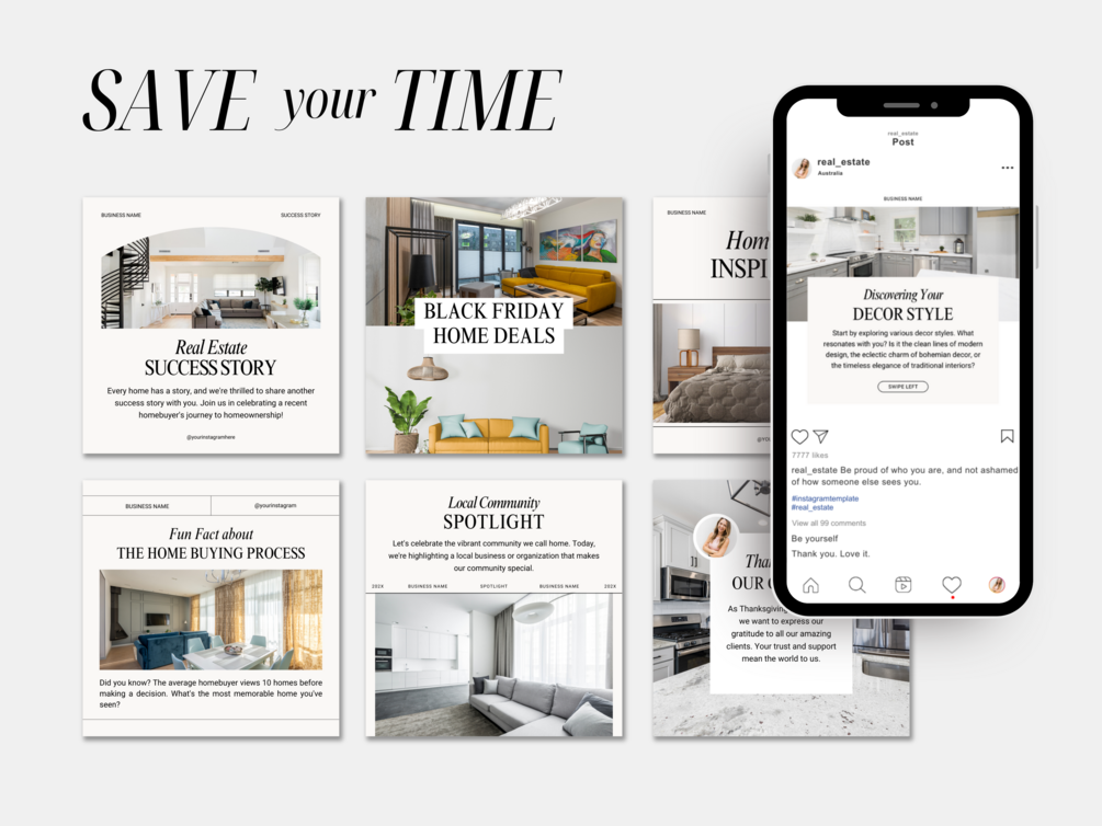 - Diverse Content Pillars: Variety is the spice of life, and our Real Estate Posts template pack reflects just that. With a range of content pillars at your disposal, you'll be able to showcase property listings, share insightful market trends, offer valuable tips for buyers and sellers, and so much more. Your followers won't be able to resist hitting that like and follow button!