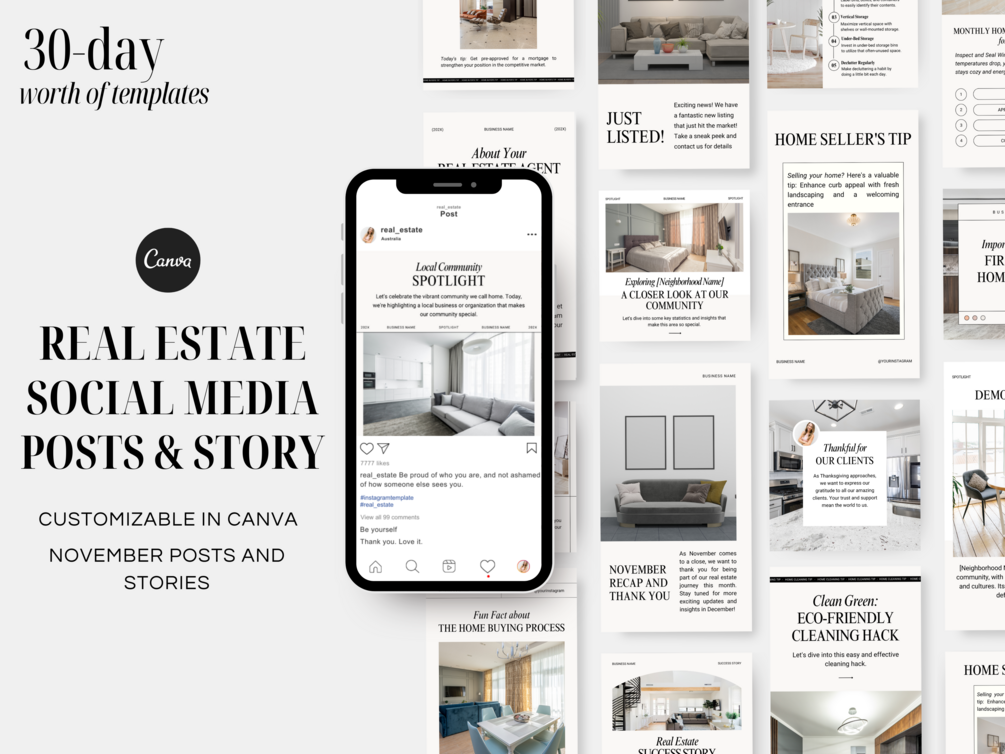 Real Estate IG Content Posts | 1 Month Worth of Content | Canva Template