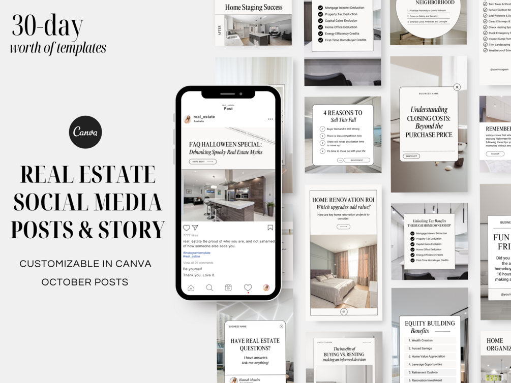 Real Estate IG Content Posts for October | 1 Month Worth of Content | Canva Template