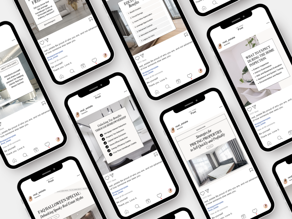 - Diverse Content Pillars: Variety is the spice of life, and our Real Estate Posts template pack reflects just that. With a range of content pillars at your disposal, you'll be able to showcase property listings, share insightful market trends, offer valuable tips for buyers and sellers, and so much more. Your followers won't be able to resist hitting that like and follow button!